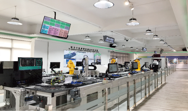 本實(shí)訓(xùn)中心包含PLC控制模塊、機(jī)器視覺(jué)檢測(cè)模塊、工業(yè)機(jī)器人、數(shù)控車(chē)床、數(shù)控銑床、AGV小車(chē)等。同時(shí)配有MES軟件系統(tǒng),可完成定制化產(chǎn)品柔性生產(chǎn),實(shí)現(xiàn)柔性生產(chǎn)的教學(xué)實(shí)訓(xùn)。