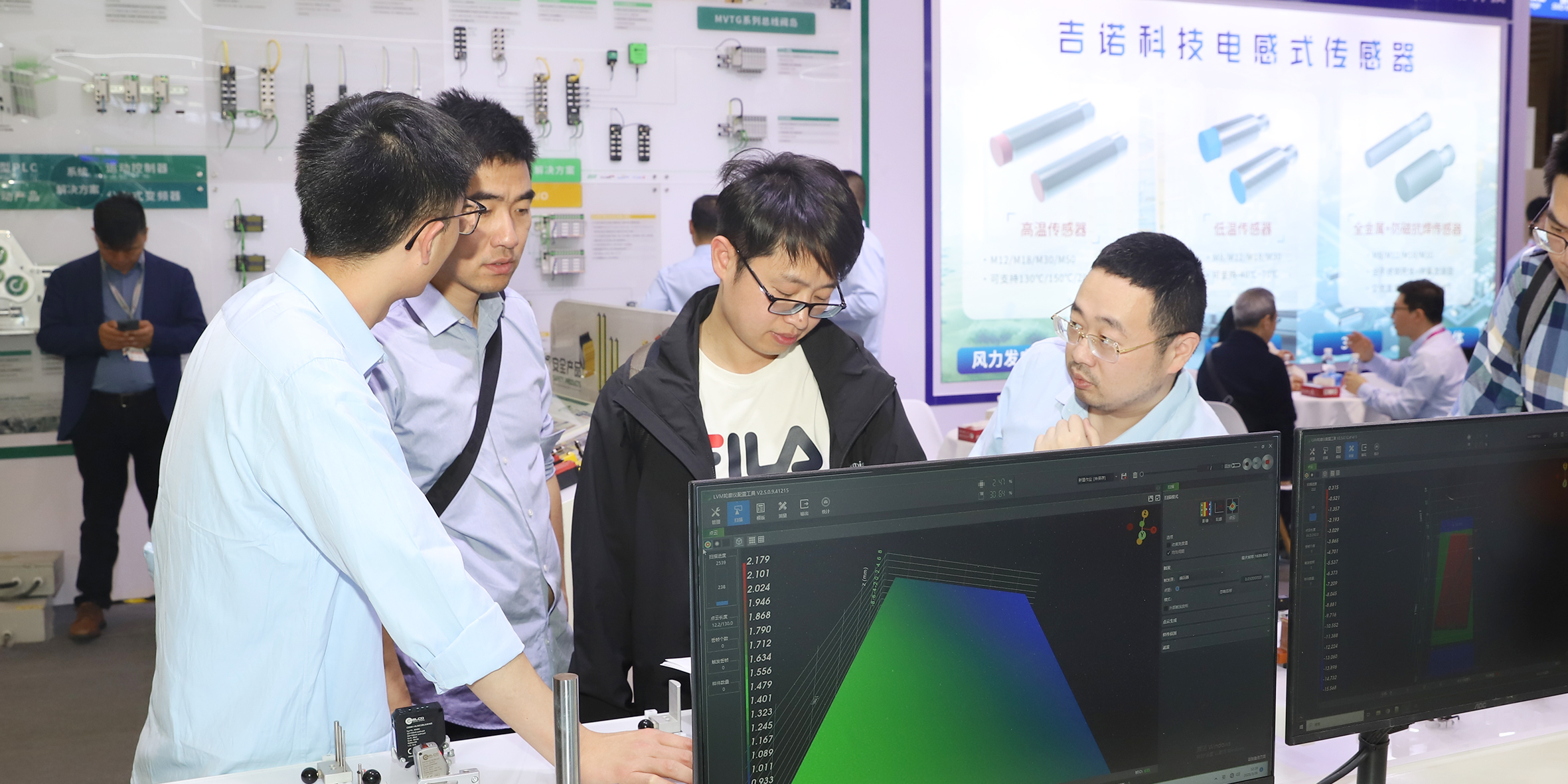 眾多觀眾聚集在宜科3D激光輪廓傳感器動態(tài)展示臺前,在專業(yè)工程師細(xì)致的講解和操作演示下,更加深入了解宜科LVM25系列3D激光輪廓傳感可輕松應(yīng)對3C、鋰電、光伏等行業(yè)各種瑕疵檢測以及尺寸測量,讓檢測更精準(zhǔn)、高效。